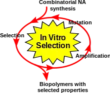 Процесс начинается с синтеза очень большой библиотеки олигонуклеотидов, состоящей из случайных последовательностей фиксированной длины с константными 5'- и 3'-участками, которые служат местами отжига праймеров (то есть комплементарного связывания праймеров с матрицей). Далее олигонуклеотиды, входящие в состав библиотеки, взаимодействуют с интересующим исследователя лигандом (чаще всего белком или небольшим органическим соединением). Те олигонуклеотиды, которые не смогли связаться с лигандом, удаляются при помощи аффинной хроматографии или магнитных шариков[7]. Олигонуклеотиды, связавшиеся с лигандом, элюируют, амплифицируют с помощью полимеразной цепной реакции (ПЦР) и подвергаются последующим циклам отбора, чтобы отобрать молекулы с наибольшим сродством к лиганду[2][3].