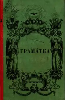 Взрывной [g] первоначально передавался латинской буквой g (дзиga, gуля), позже буквой ґ, в том числе и как предлог «к» (прямували ґ пустині Моавській).