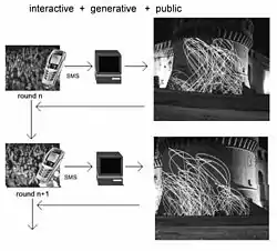 Генеративное искусство алгоритмически генерирует, подбирает или выстраивает произведение, используя систему, заданную компьютерной программой, математическим, механических или случайным автономным процессом. Соня Лэнди Шеридан подготовила программу по генеративным системам в Школе Института искусств Чикаго в 1970 году как ответ на социальные изменения, вызванные отчасти революцией в области компьютеров и робототехники[7]. Программа, объединившая художников и учёных, ставила целью сделать художника активным участником исследования современных научно-технологических систем и их связи с искусством и жизнью. В отличие от копи-арта, генеративные системы стали частью исследований, направленных на создание элегантных и простых систем, предназначенных творчества широких масс населения. Художники программы пытались преодолеть разрыв между элитой и новичками, упрощая коммуникацию между ними и таким образом передавая первичную информацию большему количеству людей в обход посредников[7].