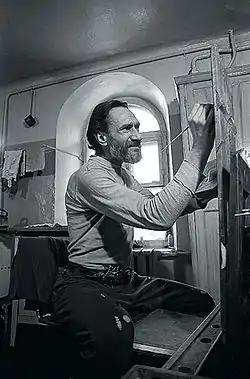 ![]() Василий Яковлевич Ситников в мастерской. Москва, 1969 год. Фото Игоря Пальмина | |