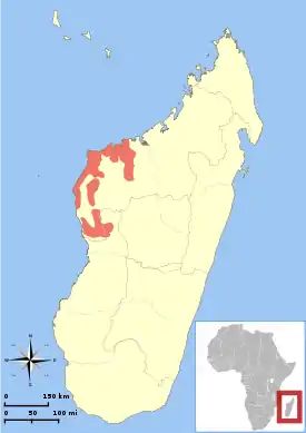 Встречаются в западной части Мадагаскара в нескольких фрагментах леса между реками Манамбулу на юге и Махавави на севере. В некоторых районах встречаются гибриды с Propithecus coronatus.[3][4]
