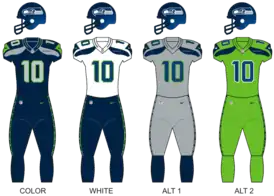 В 2016 году был представлен комплект формы для «NFL Color Rush» — совместной акции NFL и «Nike», в которой команды участвовали в матче в одном альтернативном цветовом варианте, в случае «Сихокс» это был полностью зелёный комплект формы. Впервые комплект «Color Rush» был надет на домашний матч против «Лос-Анджелес Рэмс», и он продолжает периодически использоваться. 3 декабря 2019 года в домашней игре против «Миннесота Вайкингс» «Сиэтл» вышел в сочетании джерси «Color Rush» с традиционными домашними темно-синими штанами[69].