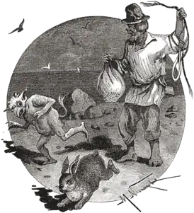 Поп поехал искать работника. Навстречу ему Балда. Соглашается Балда идти ему в работники, платы требует только 3 щелчка в лоб попу. Поп радёхонек, попадья говорит каков будет щёлк. Балда дюж и работящ — но срок уже близок, а поп начинает беспокоиться. Жена советует отослать Балду в лес к медведю, будто он за коровой — Балда идёт и приводит медведя в хлев. Поп посылает Балду с чертей оброк собирать, Балда берёт пеньку, смолу да дубину, садится у реки, ударил дубиной в воду и в воде охнуло…"