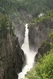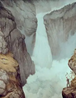 ![]() Водопад Рьюканфоссен. Современный вид. Фото | ![]() Т. Киттельсен. Эскиз к рисунку «Водопад», 1907 |