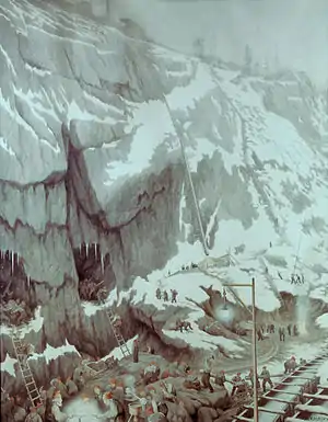 Рисунок «Земляные работы» (норв. Grunnarbeide) изображает рабочих, укрощающих природу своей строительной деятельностью. Заснеженные крутые горы составляют задний план картины. На переднем плане можно видеть ниссе, подобно массе муравьёв работающих на дне глубокого ущелья. В письме к художнику Сэм Эйде просил, чтобы Киттельсен включил в рисунок и тех, кто работал с огнём и химическими аппаратами. Эти задачи были так же важны для данного проекта, как и реальные строительные работы.