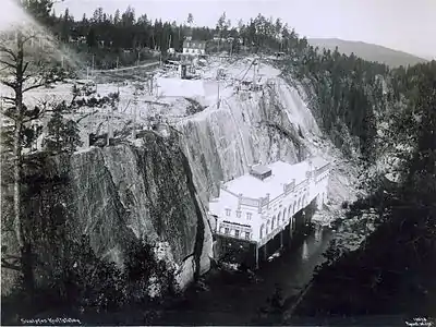 Большинство подготовительных работ было закончено в первой половине декабря 1905 года — время, когда была учреждена «Гидро» — и закладка фундаментов электростанции и головной дамбы в горловине началась в одно и то же время. Таким образом, дальнейшая работа на электростанции могла проводиться на сухой земле. Крыша была закончена в октябре 1906 года, и работа по установке турбин началась в 1907-м. Плотину спустили и поверхность была очищена к концу марта 1907 года, а в октябре того же года электростанция начала работать.