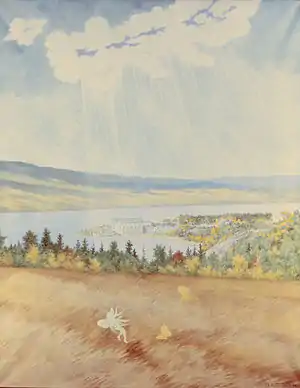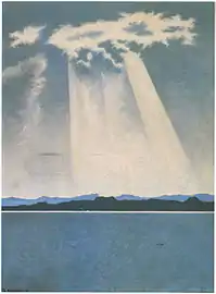 Характерный вид облака с исходящими из него лучами можно также наблюдать на картине Киттельсена «Норвегия, Норвегия» (Norge, Norge) (1898).