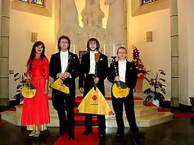 Состав инструментов: домра малая (прима), домра-альт, балалайка-прима, балалайка-бас.