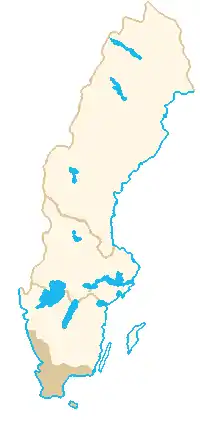 Территория Скании (вкл. о. Борнхольм) отмечена затемнением.