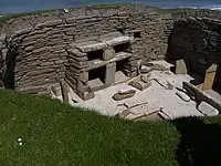 Скара-Брей (Skara Brae) — крупное и хорошо сохранившееся поселение эпохи неолита, обнаруженное у залива Скейл (en:Bay of Skaill) на западном побережье острова Мейнленд, Оркнейские острова, Шотландия. Состоит из 8 домов, объединённых в блоки, которые были населены примерно в 3100-2500 гг. до н. э. Это наиболее хорошо сохранившееся европейское поселение эпохи неолита — степень сохранности такова, что памятник включён в список Всемирного наследия ЮНЕСКО как один из четырех в объекте Памятники неолита на Оркнейских островах[3].