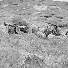 ![]() Командир и дальномерщик миномётного расчёта скаутов Ловата на Фарерских островах, 20 июня 1941 года | |