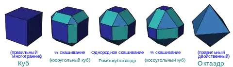 Для многогранников операция скашивания даёт последовательность многогранников от правильного многогранника до его двойственного.