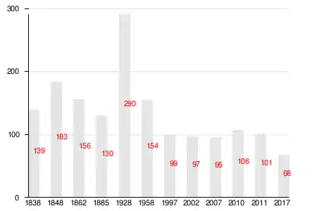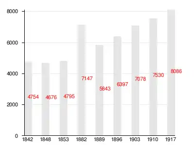 Изменение численности населения прихода Скворица с 1842 по 1917 год[27]: