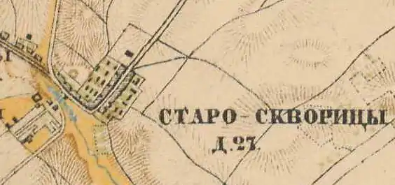 СТАРЫЕ СКВОРИЦЫ — деревня принадлежит ведомству Гатчинского городового правления, число жителей по ревизии: 66 м. п., 73 ж. п. (1838 год)[12]
