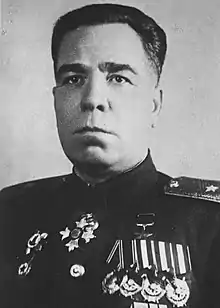 С декабря 1943 года находился на излечении в госпитале в Москве, и после выздоровления в феврале 1944 года был направлен на учёбу в Высшую военную академию имени К. Е. Ворошилова. После её окончания в апреле 1945 года был назначен на должность командира 26-го стрелкового корпуса (1-я Краснознамённая армия, Дальневосточный фронт).