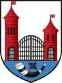 - Брама в виде двух круглых башен разной высоты с шатровыми верхами и стрельчатыми проёмами;