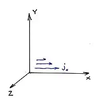 Для упрощения решения предположим, что ток течёт вдоль оси по однородному бесконечному проводнику, занимающему полупространство . Поверхностью проводника является плоскость Таким образом: