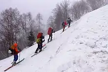 Скитур (англ. ski tour) — прохождение маршрутов по пересечённой местности на специальных лыжах, включающее подъёмы и спуски. Представляет собой комбинацию горного и простого туристического лыжного похода, а также возможность кататься на горных лыжах на таких склонах, до которых невозможно добраться на подъёмниках. Подъём осуществляют пешком на лыжах. Лыжи для скитура оснащены специальными устройствами, препятствующими проскальзыванию (камусами) и специальными креплениями, позволяющими пятке отрываться от лыжи при ходьбе в гору. Спуск осуществляют традиционным способом.[1][2][3]