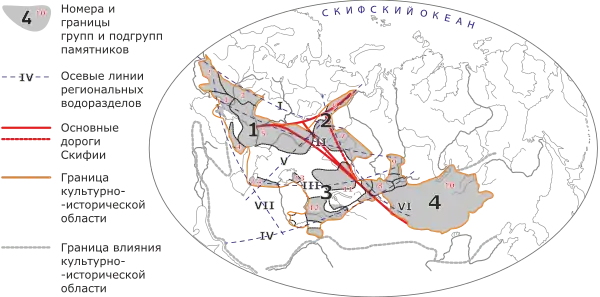 Но эти рубежи условны, так как в связи с вторжением войск Дария I около 514—512 годов до н. э. все цари провели общий Совет царей Великой Скифии (Геродот. Кн. 4.102), что говорит о координации действий народов на огромной территории.