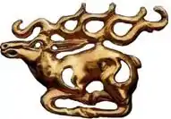 Влияние скифского искусства: фибула в форме лежащего оленя (внизу), около 400 г. н. э., Северо-Восточная Европа
