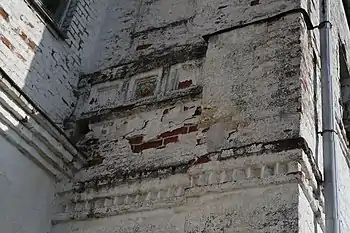 Барабаны украшены аркатурно-колончатыми поясками с бегунцом и горизонтальными тягами в духе традиции архитектуры митрополита Ионы (1652-1690 гг.).