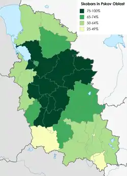 По данным опросов ПсковГУ 2002—2003 годов, около 60 % уроженцев Псковской области пользовались региональным самоназванием «скобарь», а также от 5 до 10 % жителей соседних приграничных районов, особенно Солецкого района Новгородской области и Торопецкого района Тверской области, территории которых ранее входили в Псковскую губернию. Всего по данным опроса, около половины жителей Псковской области достаточно часто используют самоназвание «скобарь», а треть — вовсе не используют, остальные — используют крайне редко или затруднились с ответом[4].
