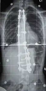 При оперативном лечении позвоночник выпрямляется до определённого угла при помощи металлических стержней, что ведёт к обездвиживанию этих отделов позвоночника. Операция при сколиозе подходит прежде всего для сильных искривлений, которые больше не могут лечиться другими методами. Оперативная фиксация может предотвратить дальнейшую прогрессию и ухудшение состояния.