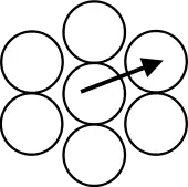 Скольжение в кристаллах с гранецентрированной кубической сингонией (ГЦК) происходит вдоль плоскостей с плотнейшей упаковкой, в особенности вдоль плоскости скольжения (1,1,1) и в направлении [1,1,0] (см. иллюстрацию). Перестановка возможных плоскостей и направлений в ГЦК дает 12 систем скольжения. Вектор Бюргерса задается следующим выражением:[1]