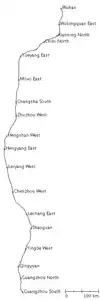 ![]() Strecke der Скоростная железная дорога Ухань — Гуанчжоу | ||||||||||||||||||||||||||||||||||||||||||||||||||||||||||||||||||||||||||||||||||||||||||||||||||||||||||||||||||||||||||||||||||||||||||||||||||||||||||||||||||||||||||||||||||||||||||||||||||
