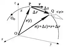 определяют соответственно среднюю скорость точки[6] и её среднюю алгебраическую скорость; если термином «средняя скорость» пользуются, то о величинах и говорят (чтобы избежать путаницы) как о мгновенных скоростях.