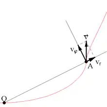 где — единичный вектор касательной, проходящей через текущую точку траектории (он направлен в сторону возрастания дуговой координаты движущейся точки), а — проекция вектора скорости на направление упомянутого единичного вектора, равная производной дуговой координаты по времени и именуемая алгебраической скоростью точки. В соответствии с приведёнными формулами, вектор скорости точки всегда направлен вдоль касательной, а алгебраическая скорость точки может отличаться от модуля этого вектора лишь знаком[4]. При этом: