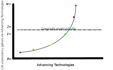 Курцвейл предсказывает, что скорость убегания от старости будет достигнута раньше, чем человечество осознает это.[10] В 2018 году он заявил, что это может произойти уже через 10-12 лет.[11]