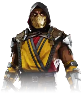 Скорпион — ранее Жёлтый Ниндзя-Призрак, который мстил убийце своей семьи — Саб-Зиро, а также главный солдат великого Адиля, однако после воскрешения снова стал человеком и заключил перемирие с младшим Саб-Зиро, узнав от него правду об убийстве своих родных. Являлся заклятым врагом Саб-Зиро старшего из-за того, что был им убит. Поначалу служил Шан Цзуну и Шао Кану, однако основной его целью является правление империей при помощи мертвецов, чему посодействовала его смерть и попадание в Мир потерянных душ. Скорпион одет в чёрно-жёлтый костюм ниндзя, его маска скрывала голый (до 2002) череп, оружие скорпиона — это кунай на цепи (в играх 1992—2006 г. на верёвке), которым он притягивает к себе противников. Когда гарпун пронзает противника, Скорпион выкрикивает: «Иди сюда!» (англ. Get over here! или Come here!, один из этих двух выкриков выбирается случайно) и дёргает цепь на себя, тем самым притягивая противника вплотную к себе, чтобы нанести тому несколько ударов, пока противник не оправился. В игре Mortal Kombat: Shaolin Monks Скорпион использует гарпун и как хлыст. Скорпион также обладает силой огня (в противовес Саб-Зиро, который управляет силой льда).