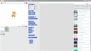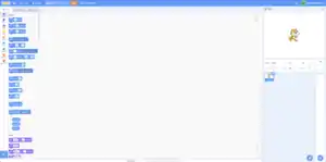 Для программирования сценариев в Скретче используется drag-and-drop-подход: блоки из палитры блоков перетаскиваются в область скриптов.