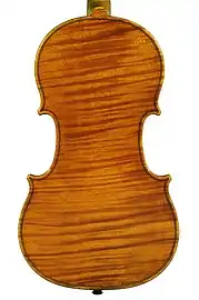 Наружные поверхности скрипки загрунтованы и покрыты лаком. При помощи лака на задней деке и обечайке фабричных скрипок массового изготовления может создаваться волнистый рисунок, имитирующий естественный рисунок клёна-явора, применяющегося для более дорогих скрипок индивидуального изготовления (мастеровых)[11]:116-120.
