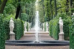 Скульптурное убранство Летнего сада в XVIII веке дополняли многочисленные, главным образом свинцовые, позолоченные изваяния, украшавшие его фонтаны, впоследствии утраченные.
