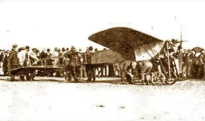 ФРАНЦЕНСБАД, 5 августа. Сегодня авиатор Славороссов совершил публичный полёт на Блерио. На высоте 1200 метров мотор остановился и спустился эффектным планирующим полётом на известное Франценсбадское болото.[7].