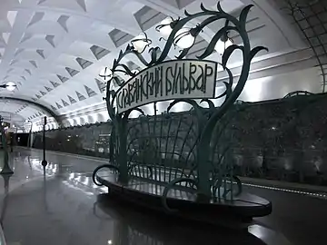 На платформе установлены металлические «деревья» для придания станции сходства с настоящим бульваром. На вершинах «деревьев» размещены фонари.