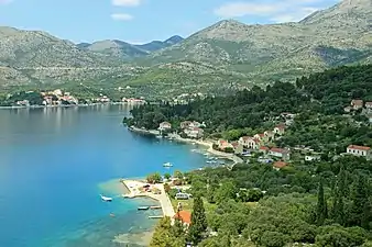 Расположен в 37 км по шоссе к северо-западу от Дубровника.