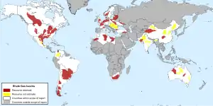 Ресурсы сланцевого газа в мире составляют 200 трлн м³[24], но только малая часть является извлекаемыми запасами. В настоящее время сланцевый газ является региональным фактором, который имеет значительное влияние только на рынок стран Северной Америки[25].