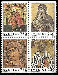 В 1992 году, при подготовке совместного российско-шведского выпуска с репродукциями русских икон из музеев двух стран, Чеслав Сланя сделал гравированные эскизы марок. Издательско-торговый центр «Марка» был готов к сотрудничеству с художником, однако впоследствии от дорогостоящей технологии металлографии решили отказаться. Новые марки с гравюрами Слани увидели свет только в Швеции, в России они были отпечатаны офсетным способом[4].