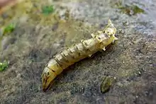 Тело личинки слепня имеет веретеновидную (Tabaninae и Chrysopinae) или грушевидную (Pangoniinae) форму, состоит из 11 сегментов: 3 грудных и 8 брюшных[10][27]. Окраска личинок чаще белая, реже тёмных тонов — бурая, коричневая или тёмно-зелёная. Число линек у слепней может быть от 5 (Chrysops) до 7—10 (Tabanus, Hybomitra)[28][27]. Размеры личинок зависят от возраста и видовой принадлежности. Длина личинок старшего возраста родов Chrysops, Nemorius и Haematopota составляет от 18 до 20 мм при массе около 0,1 г. Самые крупные личинки отмечены у Tabanus sudeticus и Tabanus anthrax — длина до 50 мм при массе более 1,2 г. Голова прогнатическая, способна полностью втягиваться в грудные сегменты. Покрывающая тело кутикула разделяется на хетоидные поля и голые участки, лишённые волосков. Брюшные сегменты, кроме последнего, имеют двигательные бугры. На всех сегментах расположены щетинконосные поры, выполняющие функцию органа осязания[28][29][30]. В передней части анального сегмента располагается орган Грабера, обладающий грушевидной формой и прозрачными покровами. Он сокращается одновременно с сокращением сердца[29]. Предположительно орган Грабера выполняет роль органа равновесия. Число телец в органе Грабера используется для определения возраста личинки. У видов рода Chrysops с каждой линькой обычно прибавляется по одной паре телец[31]. На конце анального сегмента находится дыхательная трубка, которая может иметь разную форму и длину. На вершине трубки может быть шип (Chrysops pictus)[28][30]. Трахейная система личинок амфипнейстического типа: дыхальца находятся на первом грудном сегменте и на конце тела[32]. За несколько дней до окукливания у личинок появляются грудные дыхальца[29].