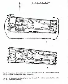 Останки одного из членов экипажа находились в деревянном гробу — вероятно это был ящик с решетчатым дном, имевшийся на борту «Св. Петра» для каких-то надобностей. Свен Ваксель, описывая смерть Беринга, указывает, что «тело его привязали к доске и закопали в землю; все остальные наши покойники похоронены были без досок». Благодаря этому сохранился череп, он единственный оказался пригодным для восстановления внешности.