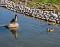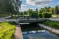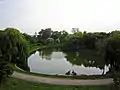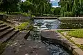 Миниатюрный водопад и искусственный остров, отделённый узким (~1 м) извилистым каналом