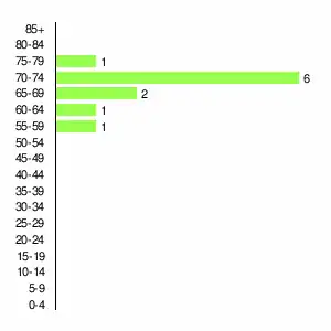 | Жителей | 427 | 544 | 312 | 124 | 26 | 13 | 11 | 11 | 11 |