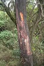 Кора неровная, чешуйчатая, тёмно-коричневого или серого цвета.