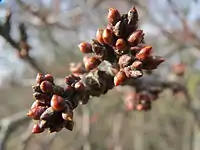 Слева направо: кора взрослого дерева; лист; почки; соцветие; цветок; поперечный срез ствола | ||||||||||