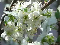 Цветковые почки простые, дают 1—3 цветка. Цветки белые, диаметром 1,5—2 см. Самоплодность сливы зависит от сорта, но урожайность всегда повышается при наличии в посадках разных сортов.