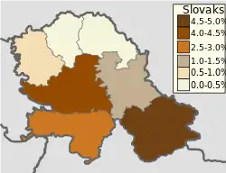 | Округ | Общяя численность | Численность словаков | Доля словаков |