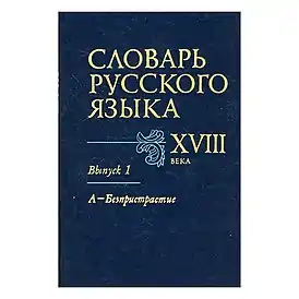 «Словарь русского языка XVIII века» — это исторический словарь толкового типа, выпускаемый Институтом лингвистических исследований РАН, представляет собой систематическое описание лексики русского языка в эпоху формирования в России нового литературного языка на национальной основе. Словарь описывает лексику, употреблявшуюся в письменных текстах с начала самостоятельного правления Петра I (1690-е гг.) до переходного периода в истории русского литературного языка, приходящегося на первое десятилетие XIX в. и вплотную примыкающего к языку пушкинской поры[1][2].